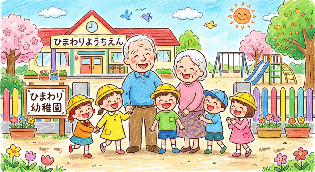 幼稚園、保育園と老人ホームがひとつになった「みんなの居場所」を推進します。
